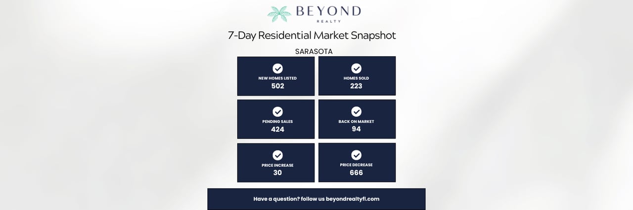 The Sarasota and Manatee County housing markets continue to stay active, with consistent movement across new listings, pending sales, and closed transactions. Here’s this week’s overview: